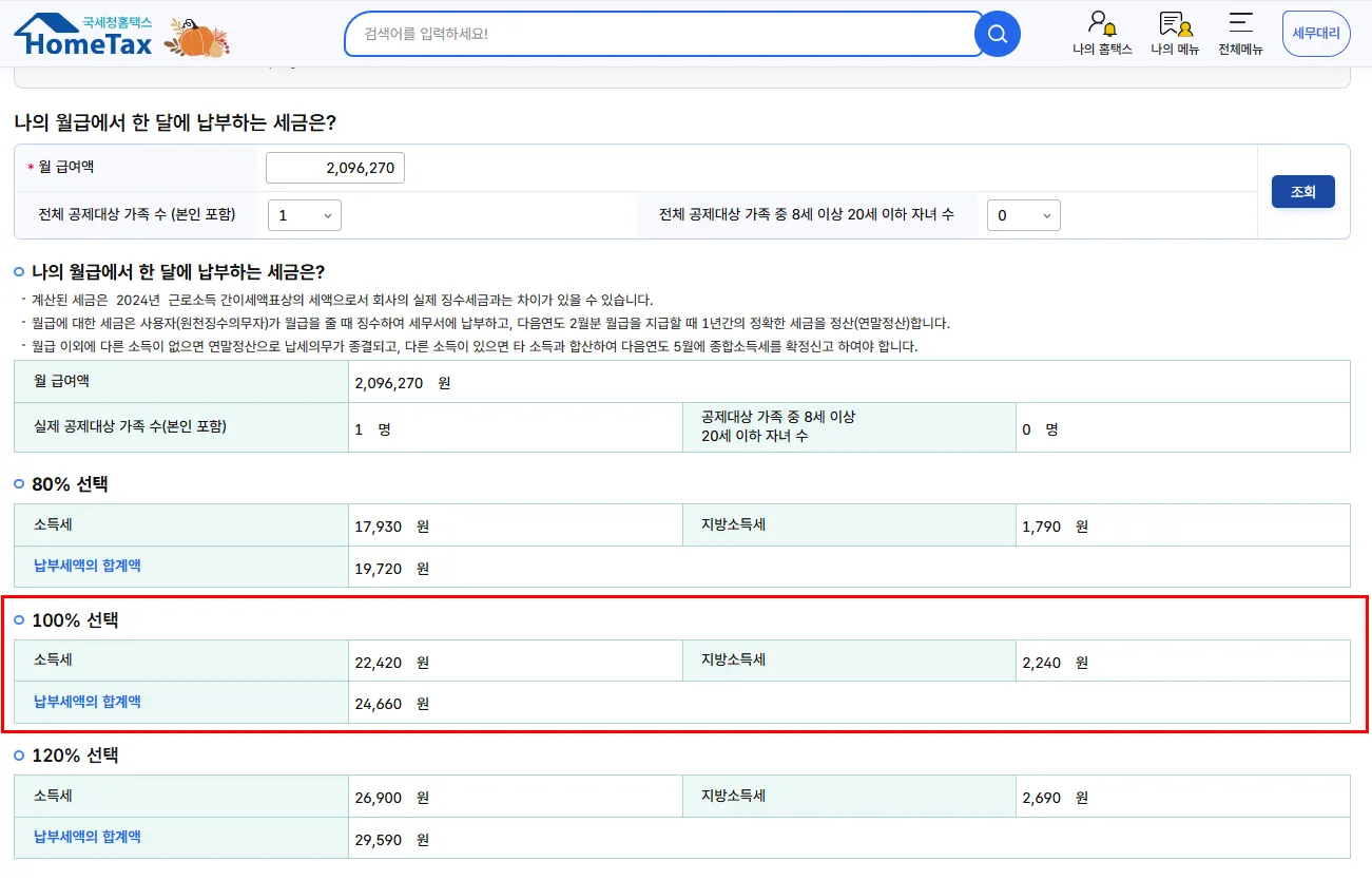 그리고 근로소득세는 홈택스에서 계산할 수 있습니다.